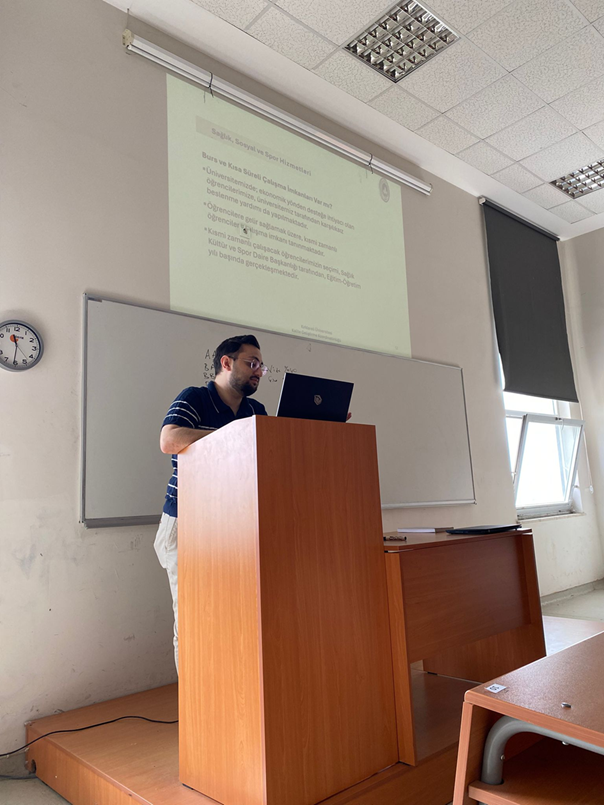 Üniversitemiz Sağlık Bilimleri Fakültesi Fizyoterapi ve Rehabilitasyon Bölümü, 2025-2026 Eğitim-Öğretim yılı güz dönemine başladı. 17.09.2025 tarihinde Fizyoterapi ve Rehabilitasyon Bölümü 1. Sınıf öğrencilerine yönelik oryantasyon programı Merkezi Derslik-2’de gerçekleştirildi. Programa bölüm öğretim elemanları Dr. Öğr. Üyesi Burcu ÖZÜBERK, Dr. Öğr. Üyesi Neslişah GÜN, Dr. Öğr. Üyesi Irmak ÇAVUŞOĞLU ve 1. sınıf Fizyoterapi ve Rehabilitasyon Bölümü öğrencilerinin katılımı sağlandı. Program, Arş. Gör. Ozan GÜR’ün öğrencilere yönelik, Kırklareli Üniversitesi ve Fizyoterapi ve Rehabilitasyon bölümünü tanıtan, sunumuyla başladı. 1. sınıfların sorumlu danışmanı Dr. Öğr. Üyesi Irmak ÇAVUŞOĞLU bölüm işleyişi hakkında bilgilendirme yaptı. Üniversiteye ait birimlerin ve hizmetlerin kapsamlı olarak anlatıldığı program, öğrencilerin yönelttiği soruların cevaplandırılmasıyla sona erdi.